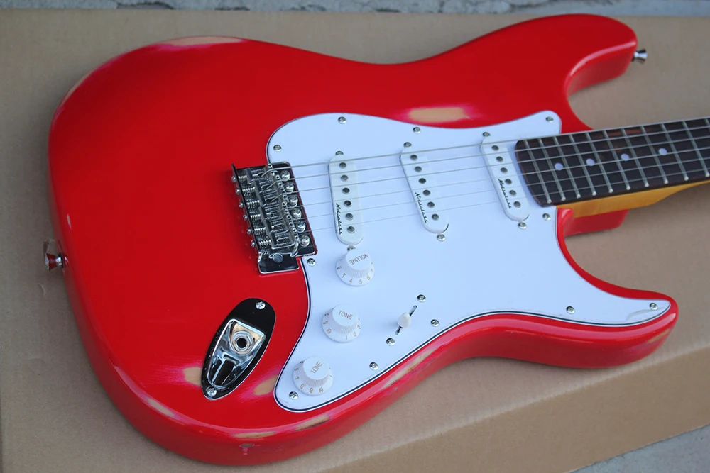 - Product name : Antique red body electric guitar with White Pickguard 3 S pickup yellow neck chrome hardware custom
